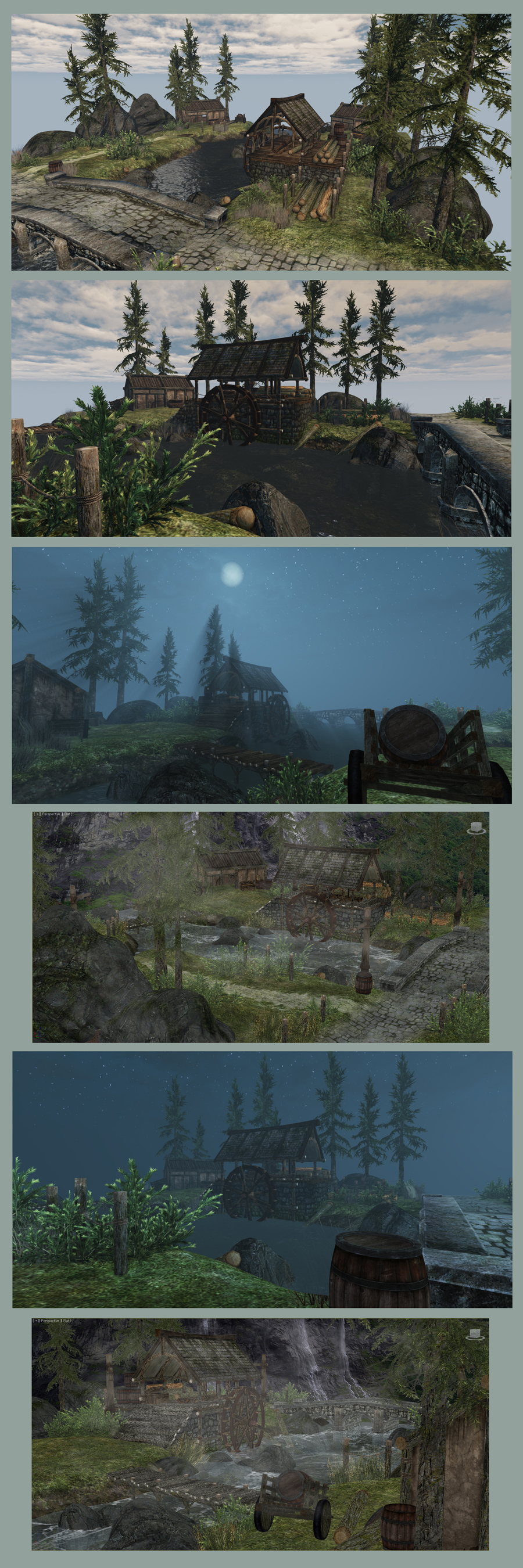 김호연학생이 작업한 물레방아가 있는 씬입니다.