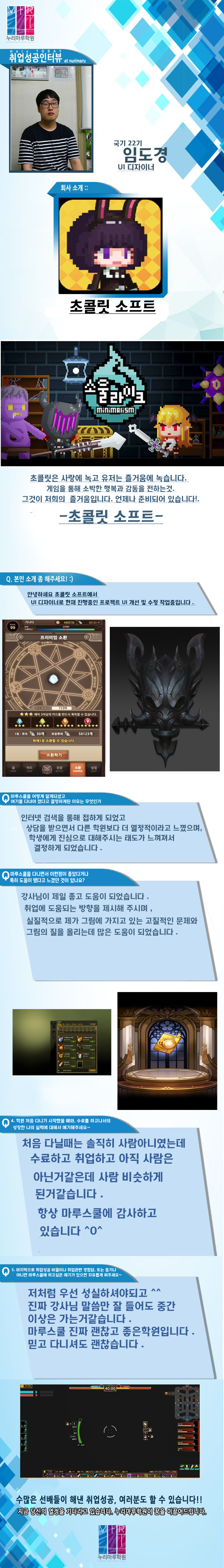 마루게임스쿨에서 취업한 교육생의 인터뷰입니다.