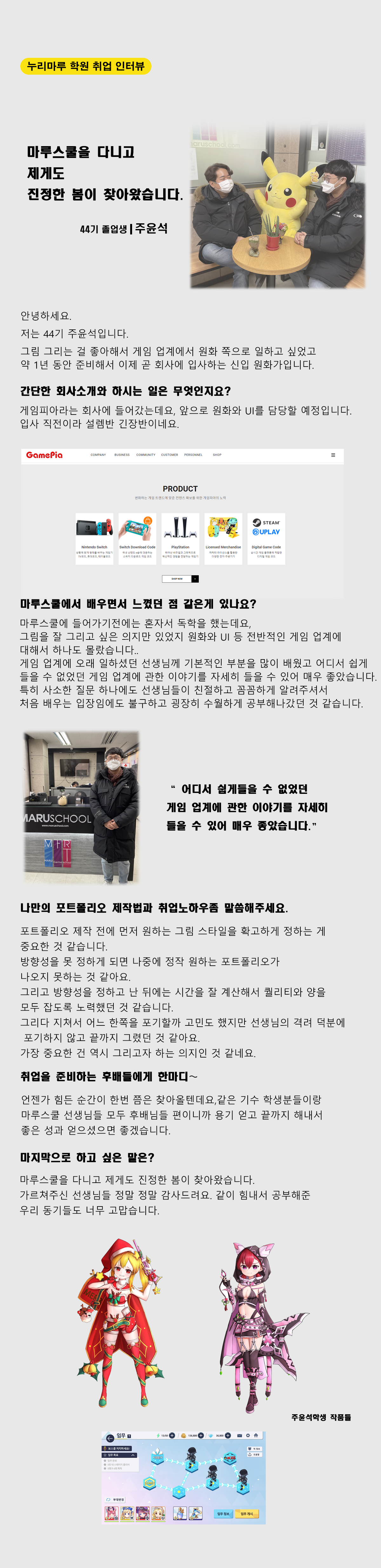 마루게임스쿨에서 취업한 교육생의 인터뷰입니다.