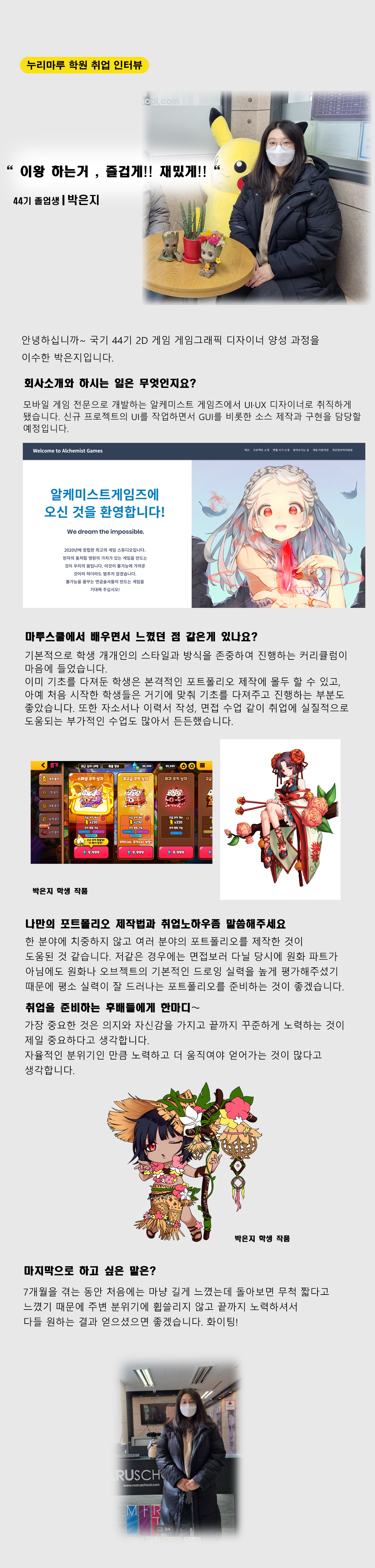 마루게임스쿨에서 취업한 교육생의 인터뷰입니다.