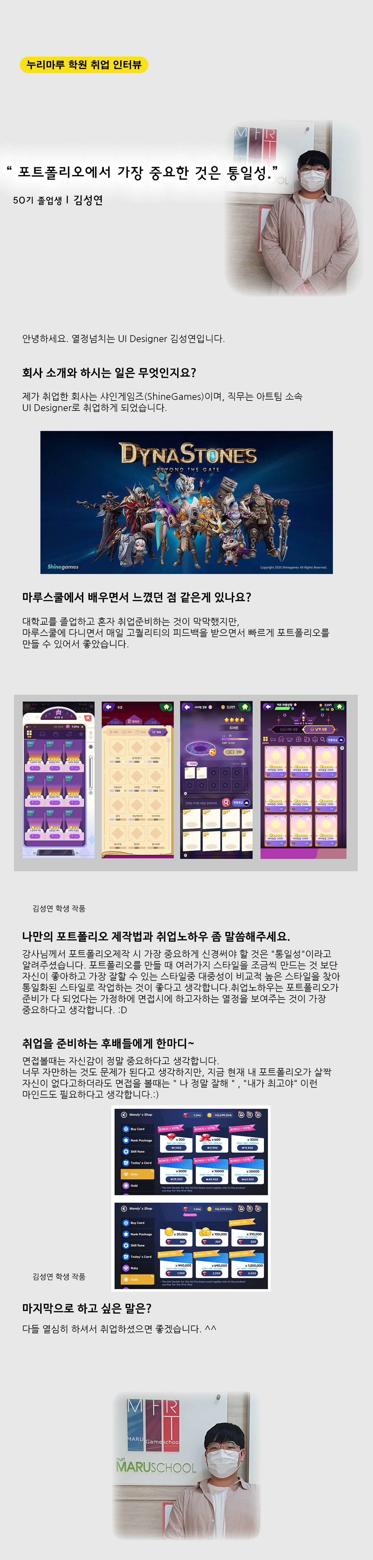 마루게임스쿨에서 취업한 교육생의 인터뷰입니다.