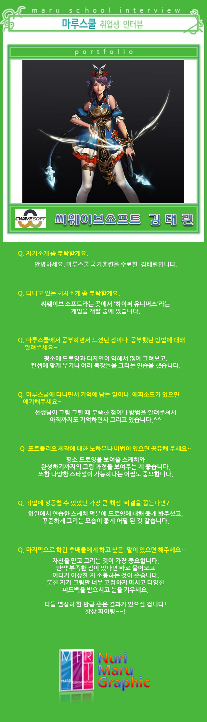 마루게임스쿨에서 취업한 교육생의 인터뷰입니다.