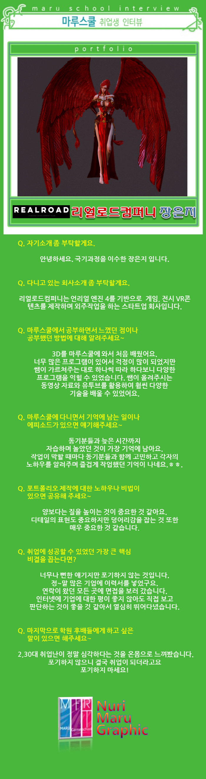 마루게임스쿨에서 취업한 교육생의 인터뷰입니다.