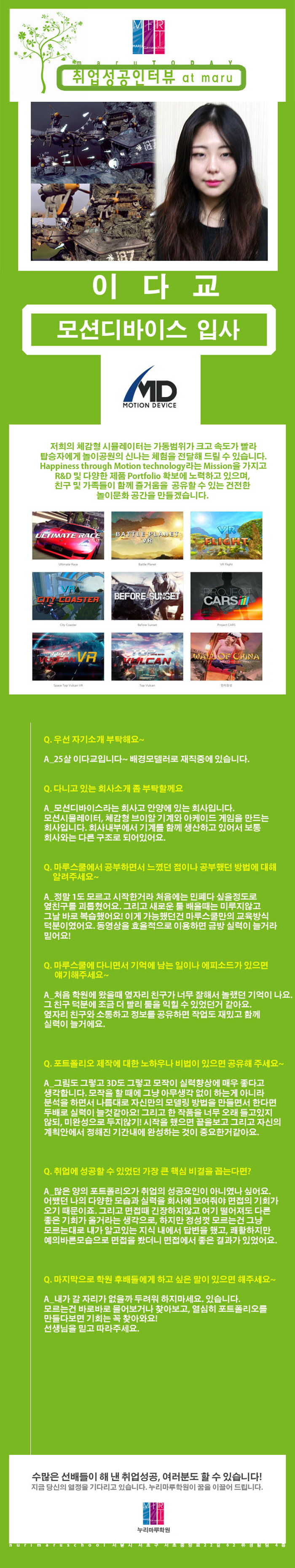 마루게임스쿨에서 취업한 교육생의 인터뷰입니다.