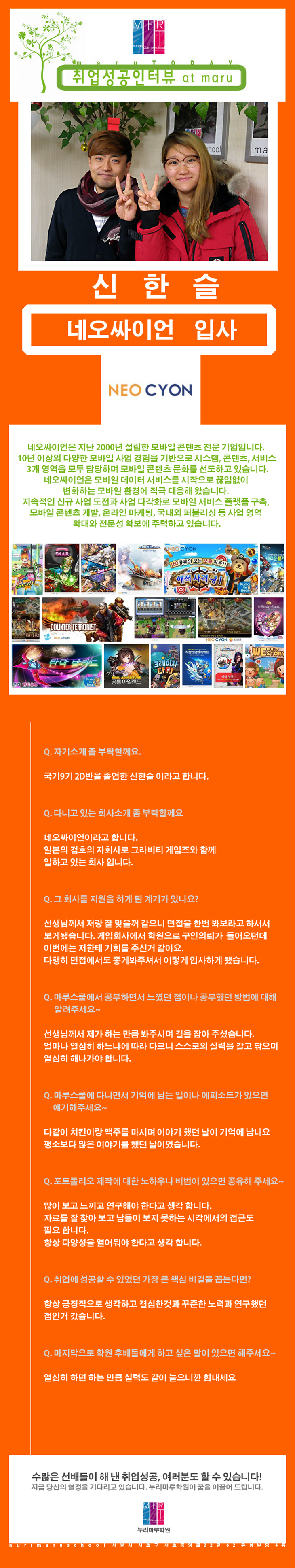 마루게임스쿨에서 취업한 교육생의 인터뷰입니다.